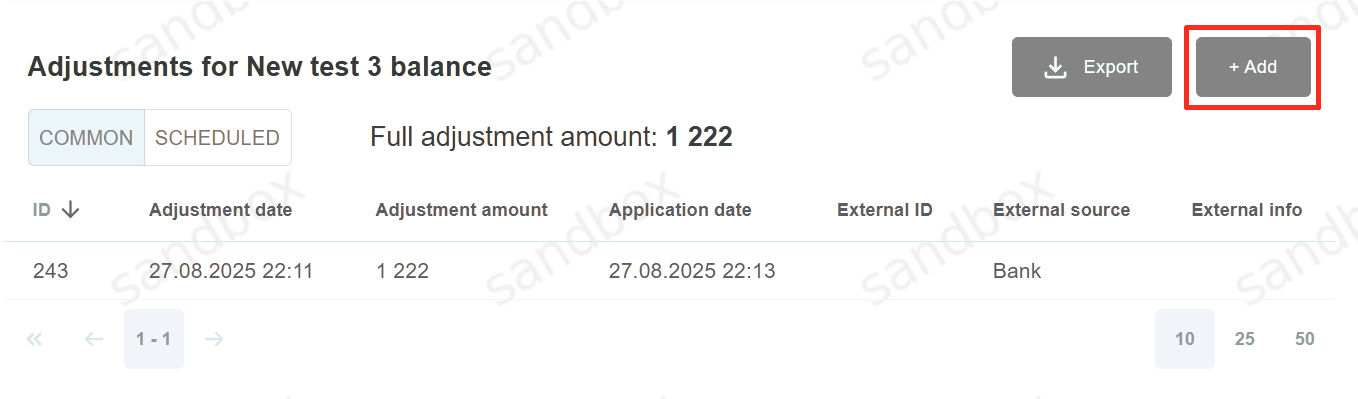 I am aware that the creation of such an adjustment can significantly affect the balance of the merchant, and lead to its uncontrolled change in the long term, which can cause financial losses due to the possibility of unlimited withdrawal of funds due to an uncontrolled increase of the merchant balance. This checkbox is mandatory